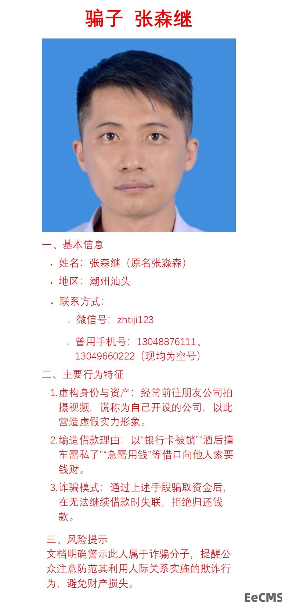 潮州汕头诈骗犯,姓名:张森继,微信:zhtiji123-潮州汕头诈骗犯